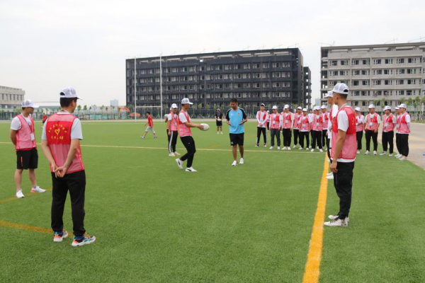 志愿者进行橄榄球专业知识培训