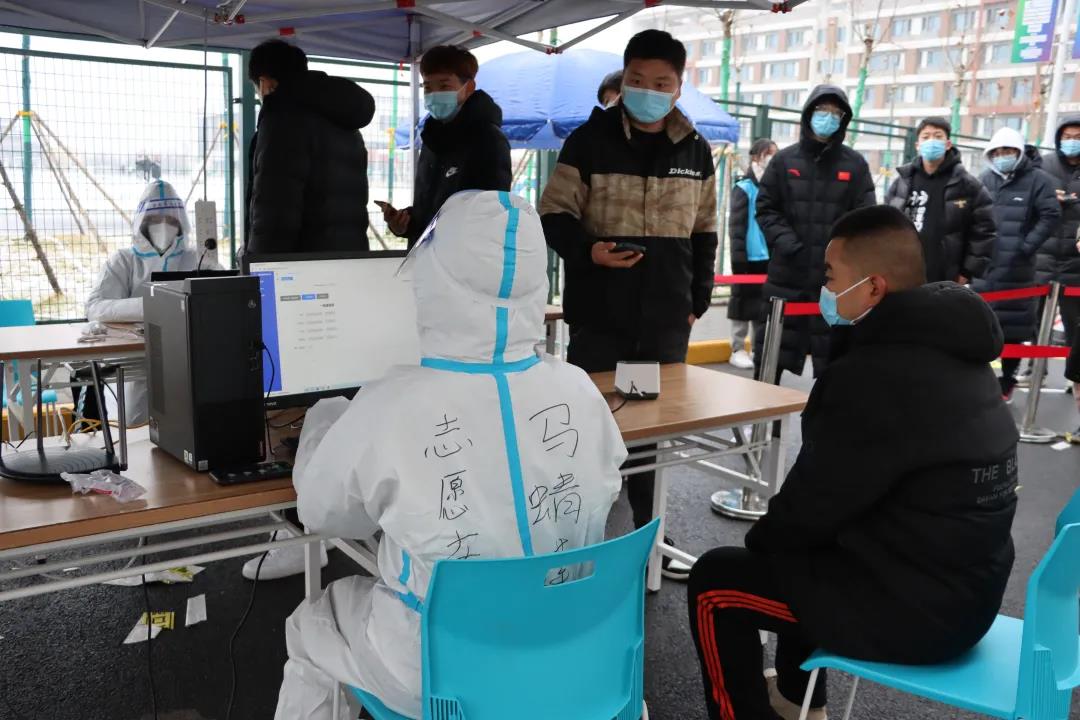 在校区师生、医护人员以及青年志愿者的共同配合下,新一轮全员核酸检测有条不紊地进行。