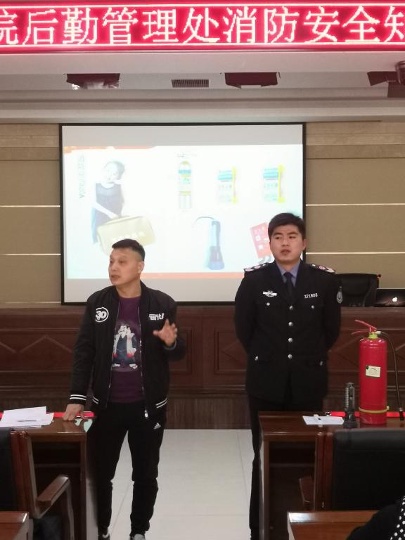 杨玉清教导员就消防安全“四个能力”、部门自查整改火险隐患要领、灭火器材的使用、初期灭火程序、安全出口、疏散通道的管理、高校特点及防火措施、高层建筑火灾的防范措施、如何报警及逃生技巧等方面进行了详细的阐述和实际操作演示。一桩桩真实案例、一次次流血的教训,通过影像资料真实、详尽地呈现在大家面前,为全体后勤人敲响了警钟。