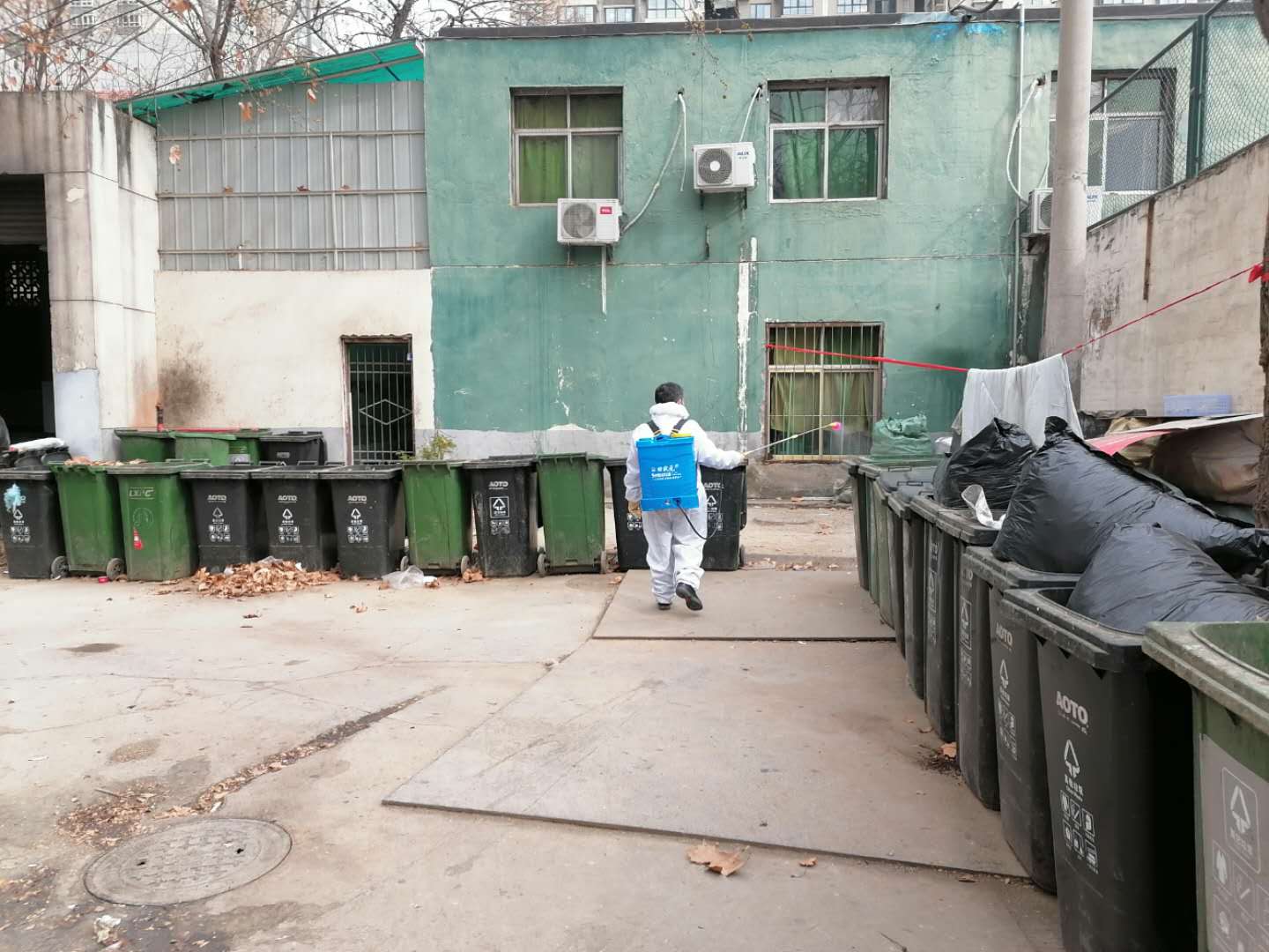 保洁绿化中心工作人员对校区、教学楼、实验楼、办公楼、家属区等进行全面消毒,对校垃圾堆放点、电梯间、楼梯扶手、家属区楼宇间、教学楼等重点、盲点、死角区域进行不少于两次的重点消毒。同时将废弃口罩进行集中消毒处理后统一回收,有效阻断病毒传播。