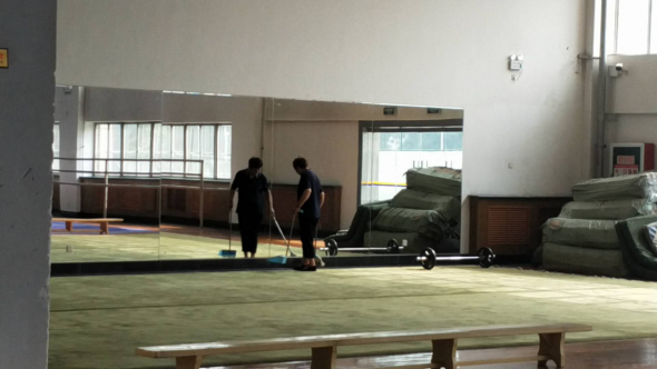 (二)后勤管理处(集团)教学保障中心(场馆中心)在对工作人员进行体温检测、登记后,严格按照校医院《场馆消毒指南》要求做好场馆(地)清洁、消毒、通风及师生体温检测工作,具体如下: