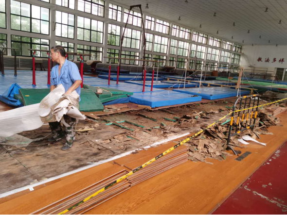 6、清理体操馆屋顶。