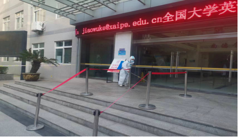 考试期间,工作人员全程佩戴口罩,在教学楼门口对进入考场的师生进行测温,维护考场内外秩序,引导考生按照要求进入考场,考试全部结束后,保洁人员对各考场进行卫生清洁、消杀通风等工作,保障教室后续安全使用。