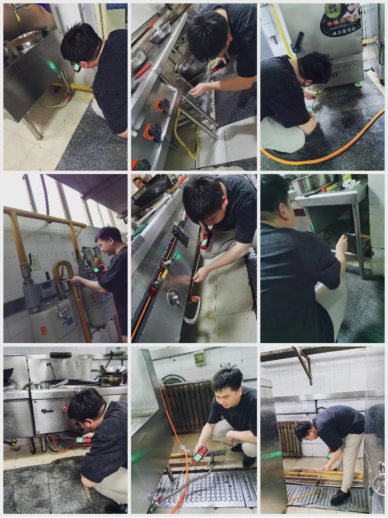 工作人员对餐厅燃气管道、后厨操作间燃气硬件设备、燃气报警装置、燃气使用管理、用气场所安全情况等进行全面排查。