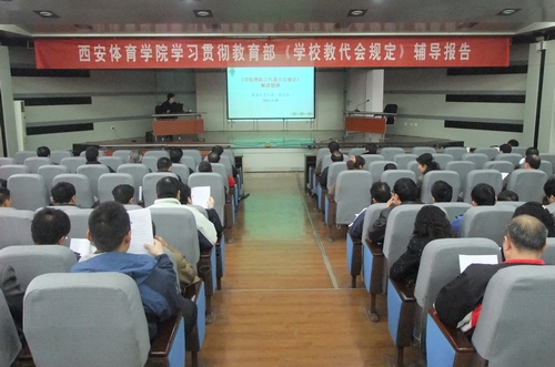 另外,院工会将教育部《学校教职工代表大会规定》上传至校园网工会网页,并利用广播、网络等媒体,开展学习宣传活动,同时,制定了《西安体育学院关于学习贯彻< 学校教职工代表大会规定>的实施意见》,重新修订了《西安体育学院教职工代表大会实施细则》(讨论稿)上报院党委,为年末学院召开教代会奠定了基础。