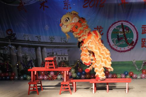 喜庆洋洋的舞狮表演拉开了晚会的序幕。在武术系主任马文国发表了热情洋溢的新年贺词后,节目演出正式开始。