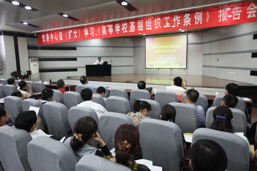王教授结合自身多年研究心得和切身体会,从《高等学校基层组织工作条例》的修订颁布、精神实质和贯彻落实等方面进行了详细解读,突出了新条例对旧条例所作的补充、细化和完善之处,并结合《条例》精神,对高校领导体制、基层单位党组织工作机制、高校党的纪律检查工作、高校党员队伍建设、高校人才队伍建设、高校思想政治工作等问题作了详细的讲解和辅导。