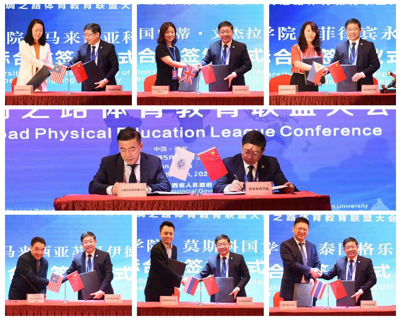 积极拓展与俄罗斯、日本、韩国、德国、英国等国家合作,成立丝绸之路体育教育联盟,举办“一带一路”中外体育院校校长高峰论坛、丝绸之路体育教育联盟大会。加强与新疆、甘肃、青海、宁夏等西部省份交流合作,与安康市政府、中国银行陕西分行、秦皇岛国家训练基地等签订合作协议,促进校地、校企合作迈上新水平。