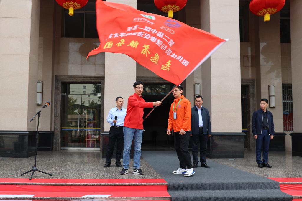 冯强为西安体育学院第二届中国—东盟国民体质与健康促进国际学术会议志愿者服务队授旗。