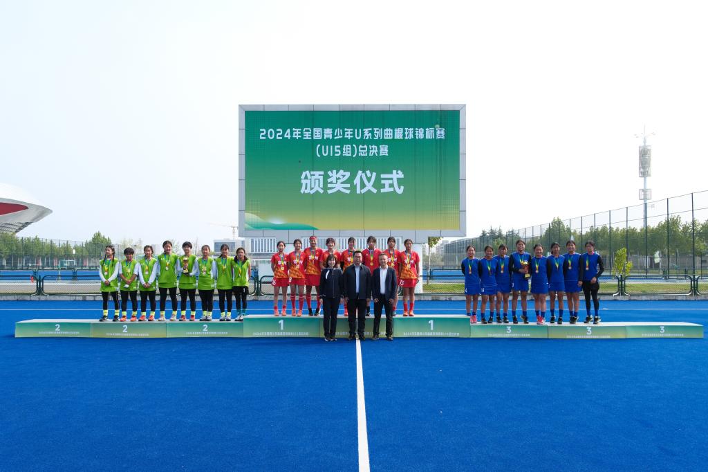 本网讯 10月18日,为期一周的2024年全国青少年曲棍球锦标赛U15组总决赛在我校鄠邑校区结束所有赛程,圆满闭幕。中国曲棍球协会副秘书长刘东伟、本次赛事技术代表兼裁判长蔡学梅,我校校长李富生、副校长张葆欣出席闭幕式并颁奖。