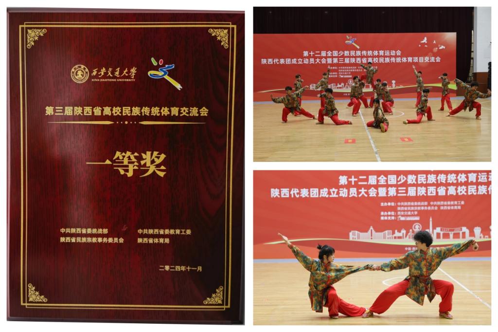本网讯 为深入学习贯彻习近平总书记关于加强和改进民族工作的重要思想,贯彻落实中央民族工作会议精神和省委民族工作会议要求,进一步铸牢中华民族共同体意识,11月9日,由省委统战部、省委教育工委、省民族宗教事务委员会、省体育局联合主办的陕西高校第三届民族传统体育项目交流会在西安交通大学兴庆校区思源活动中心举行。我校党委统战部联合武术学院报送的罗雪琳老师指导的民族传统体育展演项目《武之韵》荣获一等奖。