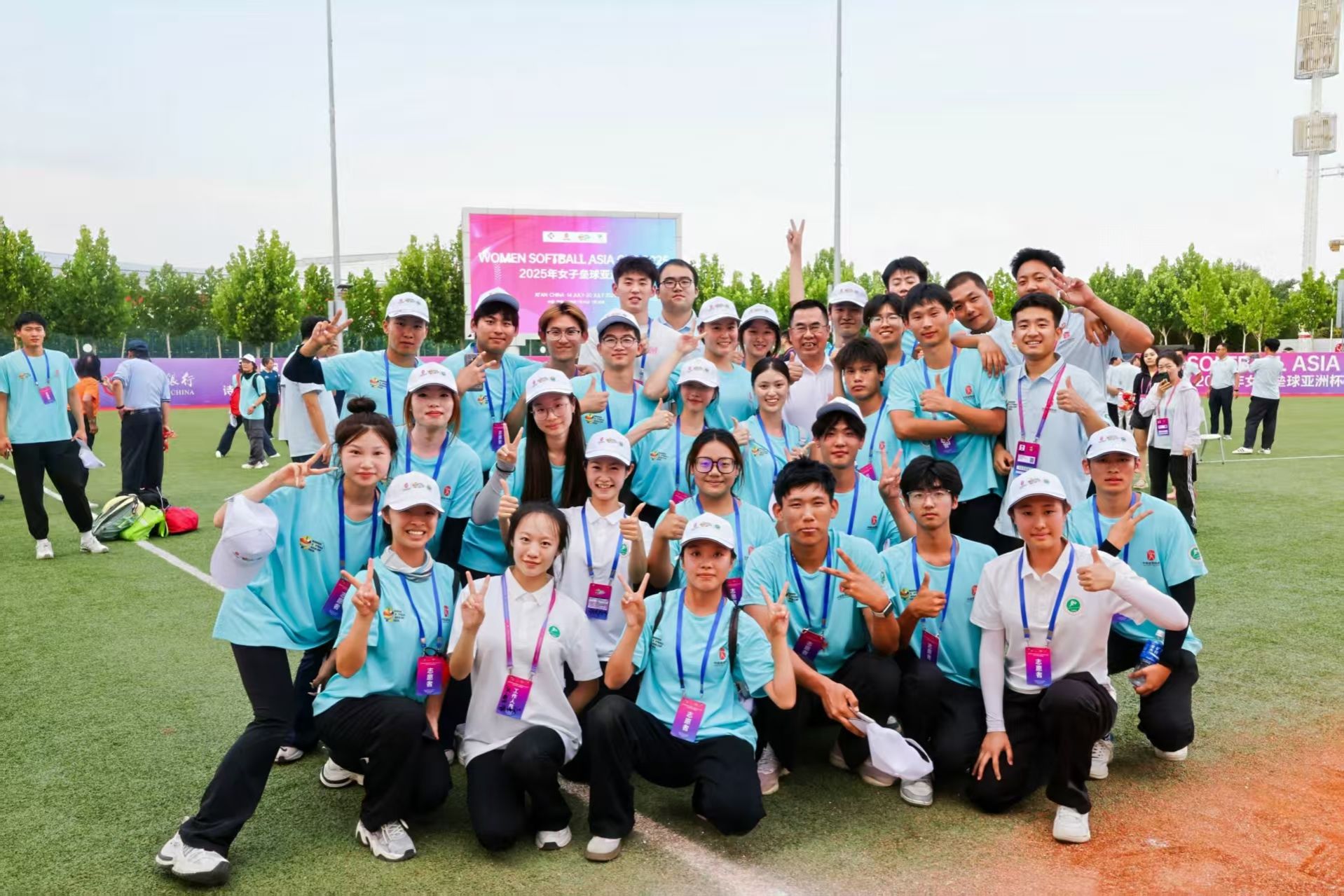 2025年女子垒球亚洲杯于7月14日-20日在西安体育学院鄠邑校区举行,赛场上,除了运动员奋力拼搏的身影,这群身着蓝色POLO衫的“小垒宝”——西安体育学院的志愿者们,构成了最安静的保障背景,也是赛事最亮的青春底色。