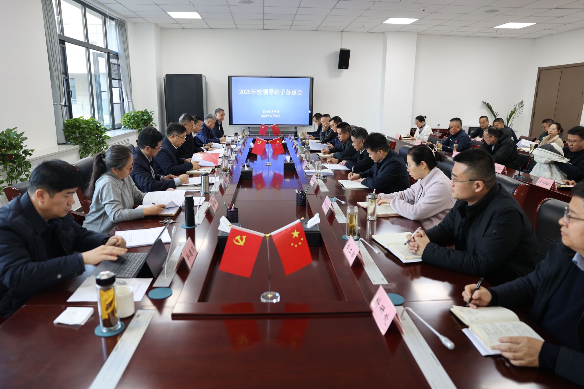 刘子实指出,“十五五”是学校夯实基础、全面发力、特色突破的极其关键的五年。在办学治校的大局上,要树立系统观念,包括内与外的关系,在苦练内功的基础上,积极争取外部资源和支持;快与慢的关系,尊重客观规律,在追求发展速度的同时,务必夯实质量根基;当前与长远的关系,既要完成好近期工作,也要对标2030、2035等关键节点,做好战略衔接;宽与严的关系,营造宽松自由的学术科研氛围,建立激励与约束机制;质与量的关系,贯彻新发展理念,实现质的有效提升和量的合理增长,产出更多高质量、标志性成果;校与院的关系,深化校院两级管理改革,激发二级学院办学主体活力,确保责权利相统一;顶层设计与基层创新的关系,加强学校层面的统筹谋划,同时鼓励各部门、各二级学院解放思想、主动作为、干出亮点;特色突破与整体提升的关系,集中资源强化体育学科特色与优势,带动相关学科专业协同发展;机遇与挑战的关系,增强信心与决心,把握发展机遇,化压力为动力。实现发展蓝图要靠一些重点工作来支撑,如聚焦申博关键任务,推进实施学者人才计划、建设国家级训练基地、推动国家队省队校办、打造西部体育科技创新高地、落地智能体育工程和产业学院、加快对外合作办学项目落地、建设数字化与生态文明校园、促进现有各类平台基地内涵建设、加强干部培养使用、完善具有西体特色的大学文化标识系统以及推进各类民生保障工程。这些任务时间紧、要求高,必须明确责任、倒排工期、全力推进。