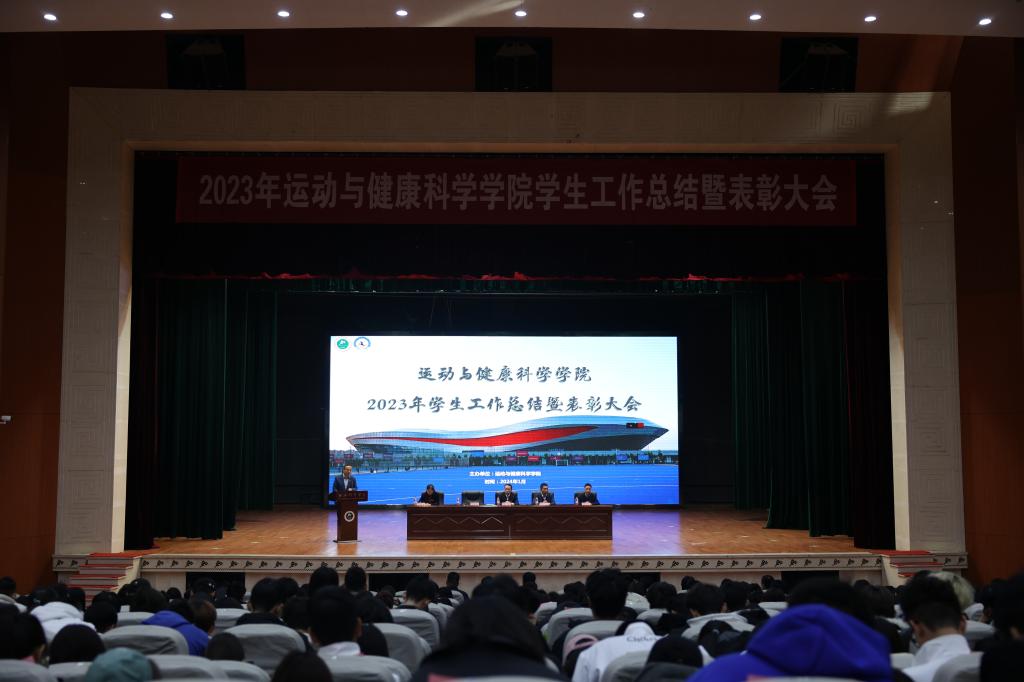 本网讯 为总结经验,激励先进,运动与健康科学学院于2024年1月9日下午召开了2023年学生工作总结暨表彰大会。运动与健康科学学院党政领导班子、教师代表、辅导员、科级以上干部及全体学生参加了表彰大会,大会由学院副院长杜新星主持。