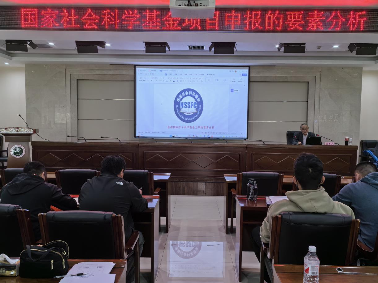 会上,朱利民以助力我校切实做好2024年国家级科研项目的申报工作,力争实现国家级科研项目立项新突破,推动我校科研工作上台阶为目标,从明确研究目的与意义、深入理解国内外研究现状、精准界定研究内容、精心安排研究计划、强调研究基础与工作条件、准确填写申请书这六个方面分析了国家社会科学基金项目申报的要素既从宏观分析了往年获批国社科重点重大项目的选题要点,剖析了科学领域前沿方向;又从细节上强调了申报书的撰写要求,指出我校教师需要深入理解并掌握申报的要素,推动深入研究,提高项目的立项成功率,争取在2024年实现重点与重大项目的突破。
