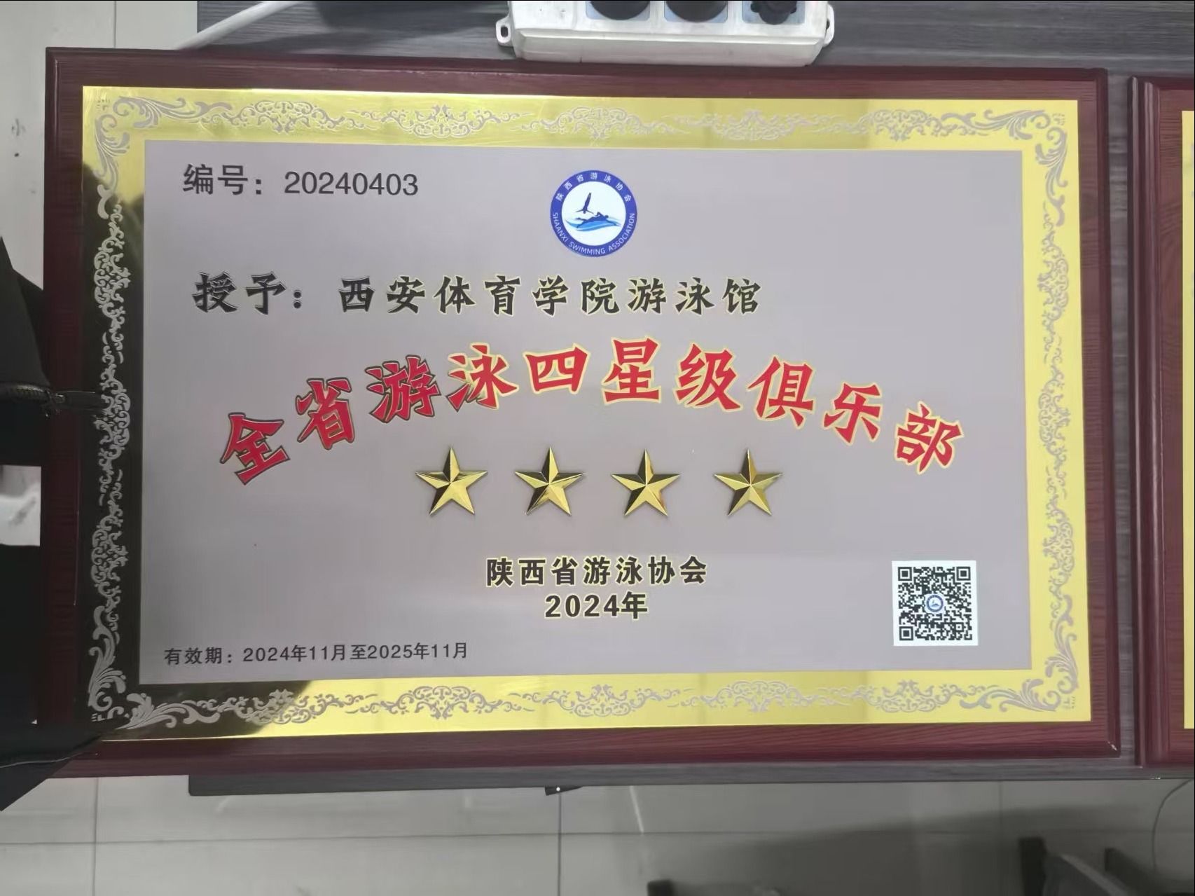 本网讯 近日,经过体育俱乐部自查申报、协会初筛、实地评审等环节,报省体育总会复核,省游泳协会对2024年度陕西省社会体育俱乐部(游泳)星级评定结果进行公示,共评定四星级5家、三星级6家、二星级3家,我校游泳馆被评定为四星级。另外,游泳馆还获得了碑林区文化旅游体育行业系统优秀单位称号,负责人宋维斌同志也被评委碑林区年度先进个人。