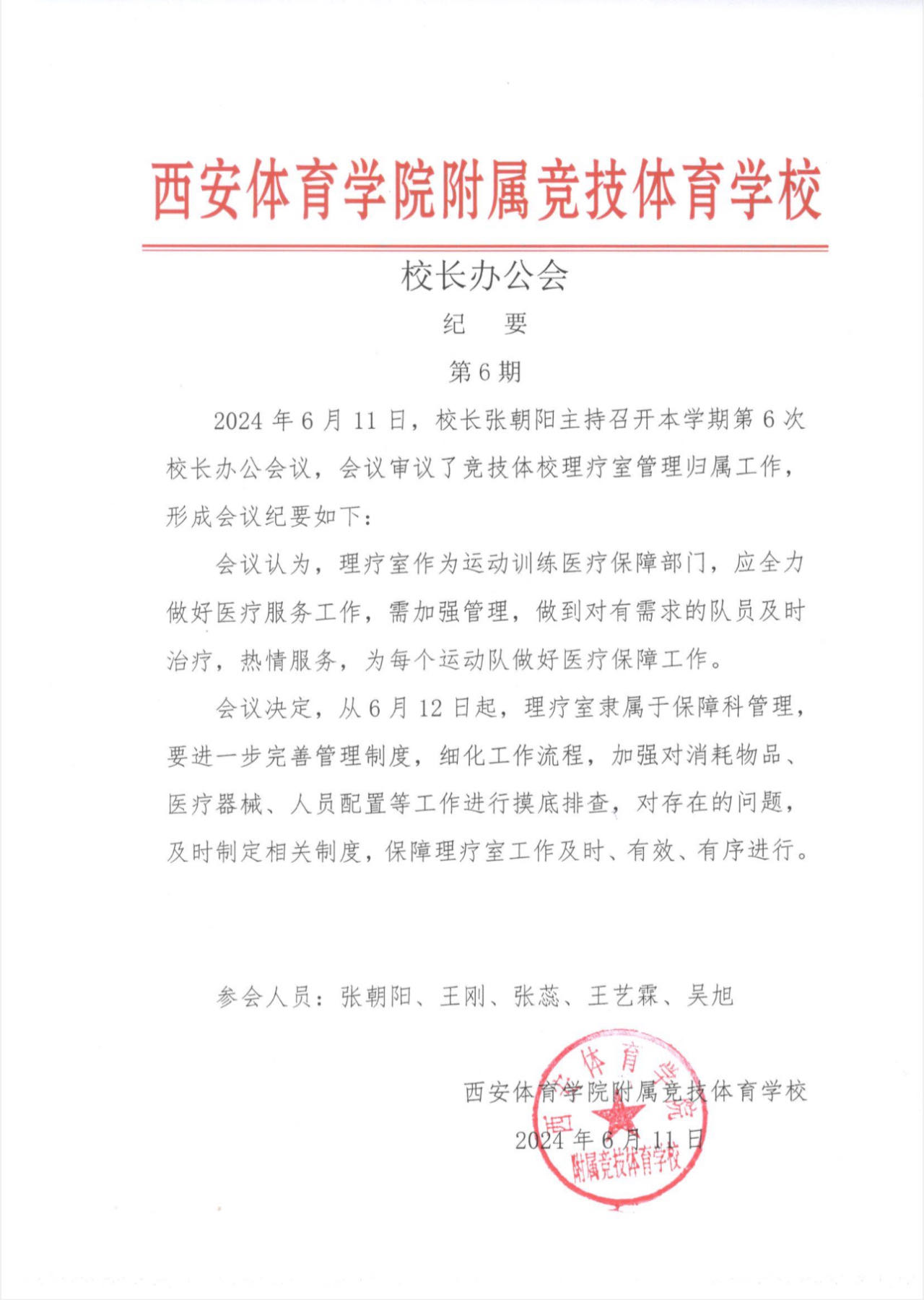 校长办公会 会议纪要(第六期)