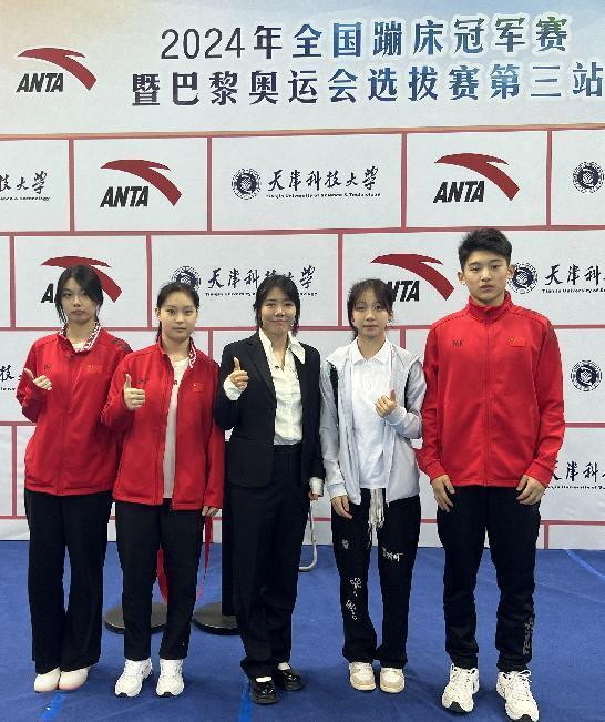 本网讯 2024年4月19日,我校蹦床队共有4名队员参加了全国蹦床冠军赛暨奥运会选拔赛(第三站),且4名队员都获得了不错的成绩,吕可馨在此次比赛中获得国家级运动健将称号。其中,双蹦床团体赛岳童谣、晋玺辕、吕可馨获得第五名,岳童谣双蹦床赛获得女子个人第七名,吕可馨双蹦床赛取得女子个人第八名,雷源林双蹦床赛获得男子个人第六名的好成绩。祝愿运动员们在后面的比赛中取得更加优异的成绩!