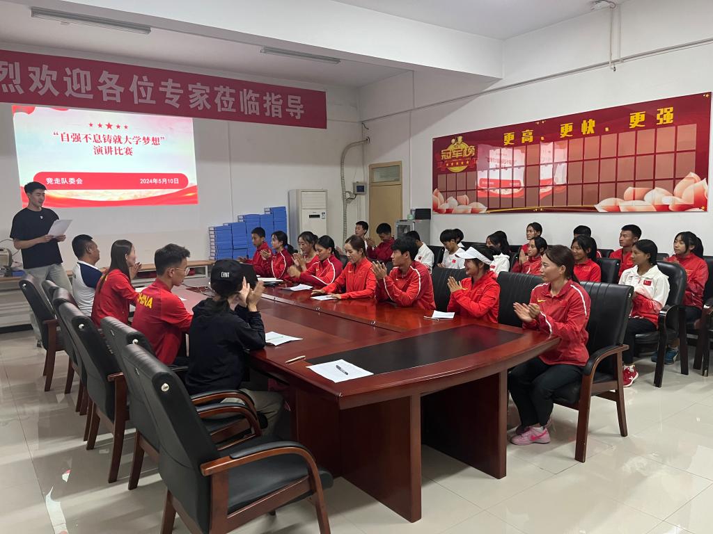 本网讯 2024年5月11日晚,我校学生活动系列之一为竞走队成功举办了一场主题为“自强不息铸就大学梦想”的演讲比赛。本次比赛旨在激发同学们自强不息、勇往直前的精神,进一步推动我校体育文化氛围的营造,本次活动由辅导员主持,评委由教练、辅导员老师组成。