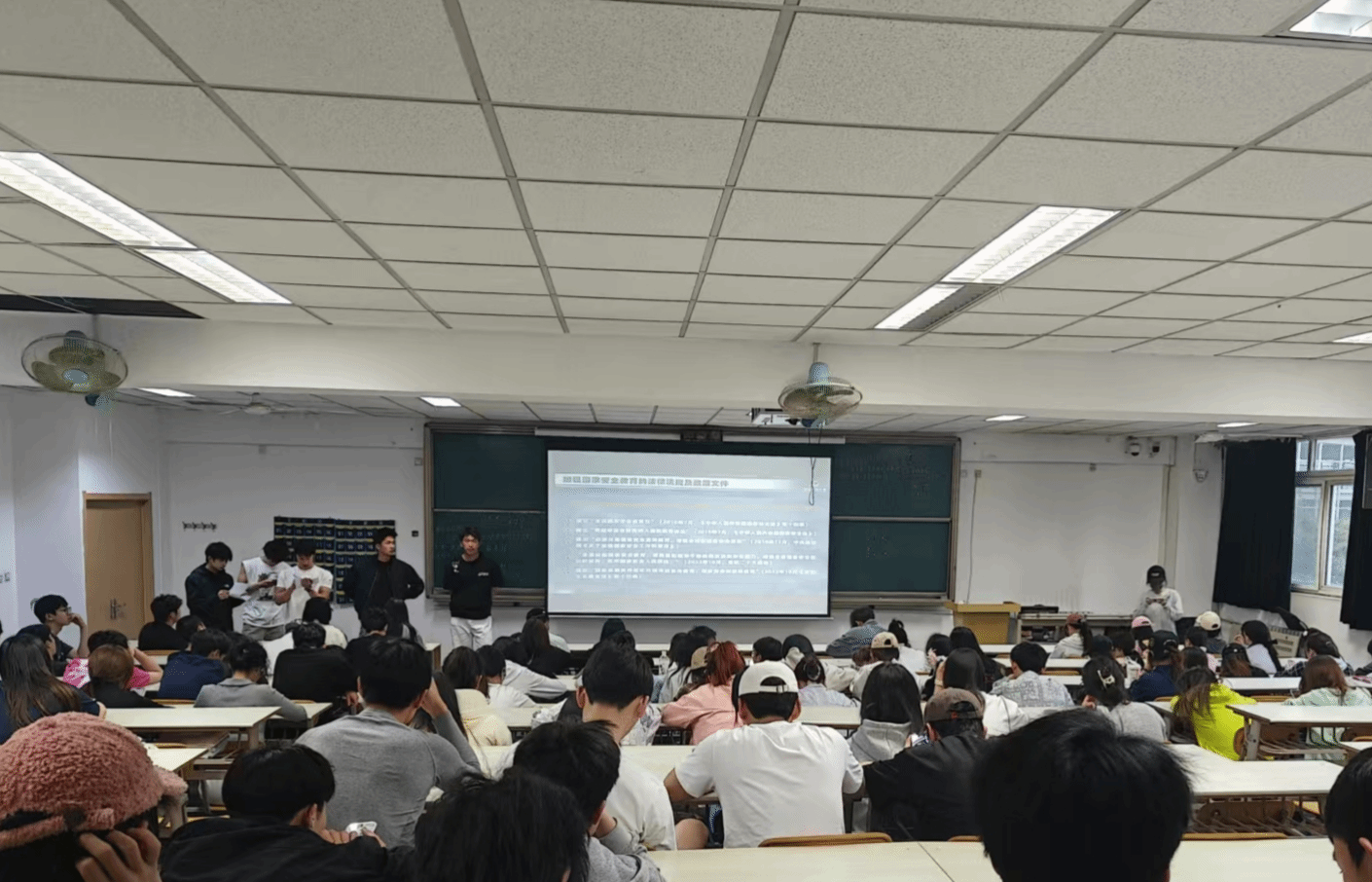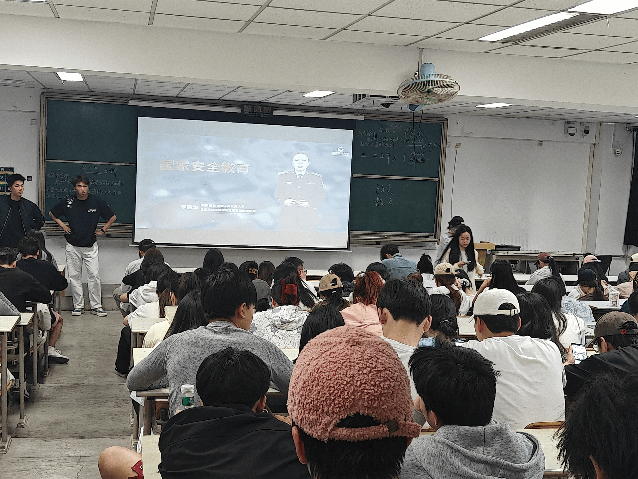 4月13日,运动与健康科学学院组织学生在教学楼202集中观看国家安全教育直播课程。