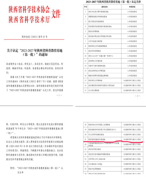 近日,陕西省科学技术协会、陕西省科学技术厅公布了“2023-2027年陕西省科普教育基地(第一批)”名单,陕西省体医融合科普教育基地入选。