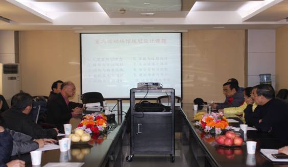 2012年1月12日台湾树德科技大学运动场馆设计专家刘田修教授应邀来我院进行友好交流。上午八点半,刘田修教授在我院相关部门人员的陪同下一起参观了学院在建的体育艺术馆及游泳综合训练馆,并对两个场馆的设计、建材的选择、室内空间利用及采光、通风的设计提出宝贵的建议。之后,双方在我院国际交流中心大会议室就场馆建设、管理与维护等方面进行了专题研讨,学院雷新声副院长、国际交流中心主任雷强教授、基建处樊康处长、场馆器材处宋国权处长、社会体育与休闲体育系郑文海教授、体育经济与体育管理系主任谢英教授以及相关人员参与了座谈。座谈中,雷院长首先代表学院对刘田修教授的到访致以热情洋溢的欢迎词,随后刘田修教授图文并茂、从主建置规划理念到运营管理的考虑,生动、系统的介绍了室内运动场馆的规划与设计,最后双方就我院日后的场馆建设和日常维护进行了进一步讨论。