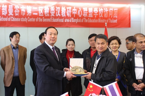 4月6日,泰国教育部曼谷市第二区教委汉教研中心联盟学校来我院进行友好交流访问并签署了合作协议。
