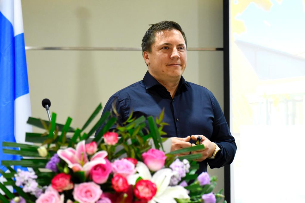 芬兰凯薩卡里奥体育学院全球销售总监Lauri Lkavalko先生在新闻发布会上做芬兰冰雪项目宣传