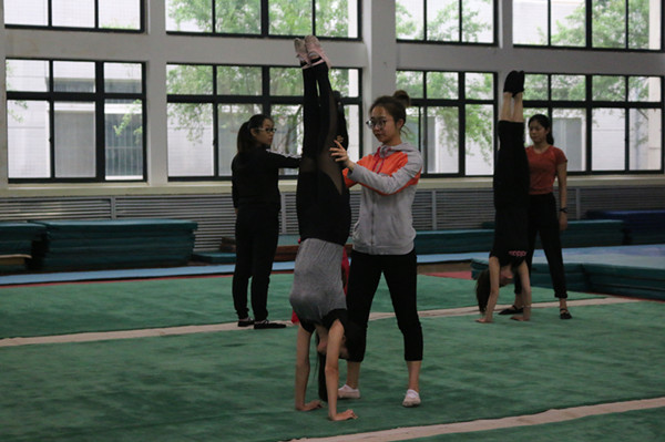 4月26日下午,我院竞赛训练处处长姜涛、副处长杨亚玲及全体同志到体操馆看望了正在集训的体育教育系体操教研室教师和集训运动员。鼓励大家认真训练,倾心投入,再接再厉,争取在比赛中取的好的成绩。