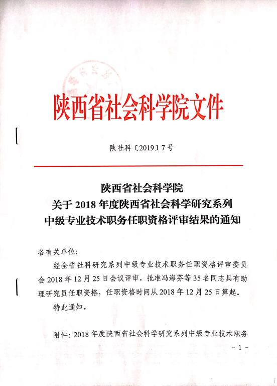 关于王彦峰同志转评研究系列中级专业技术职务任职资格的通知