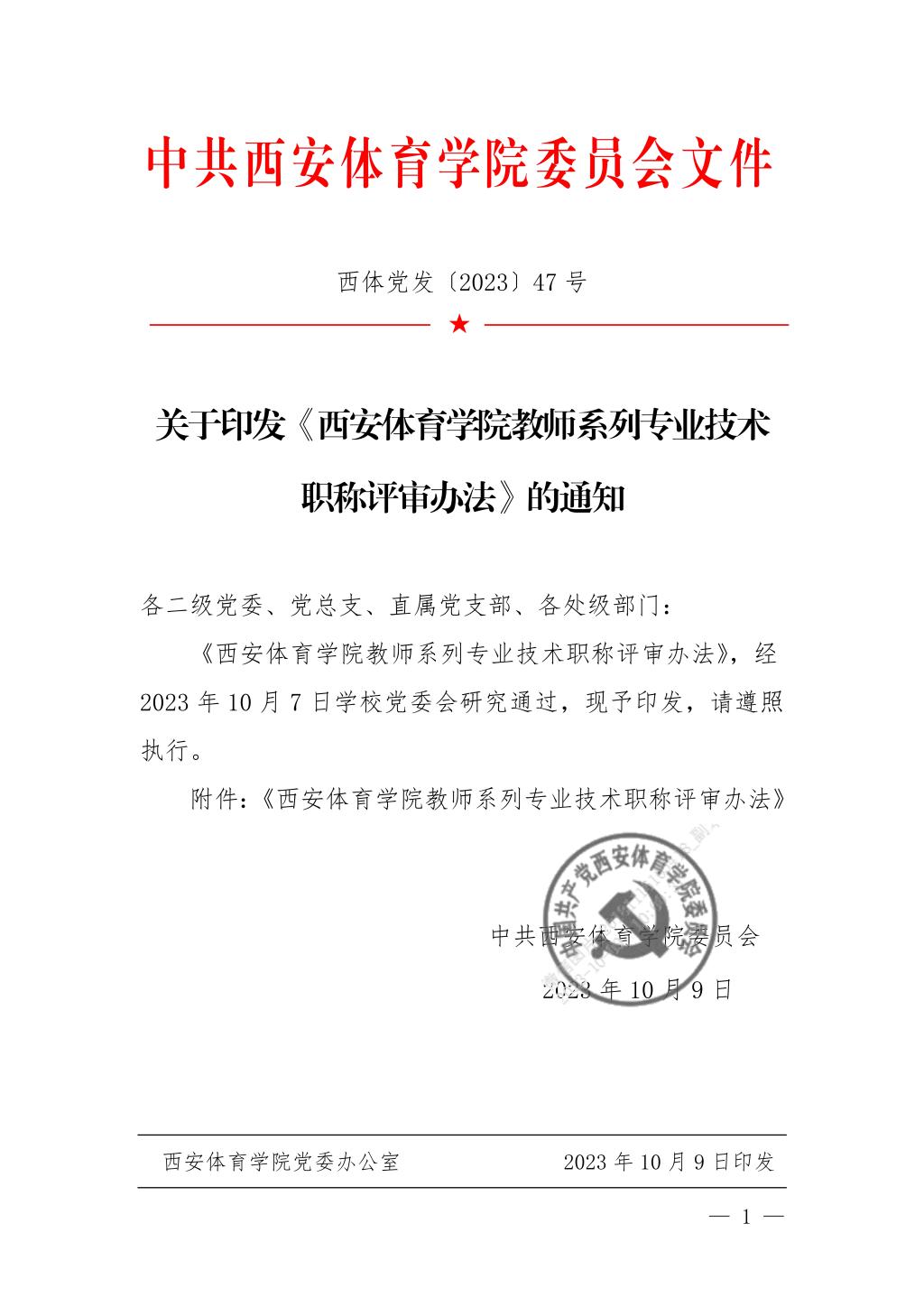 关于印发《西安体育学院教师系列专业技术职称评审办法》的通知
