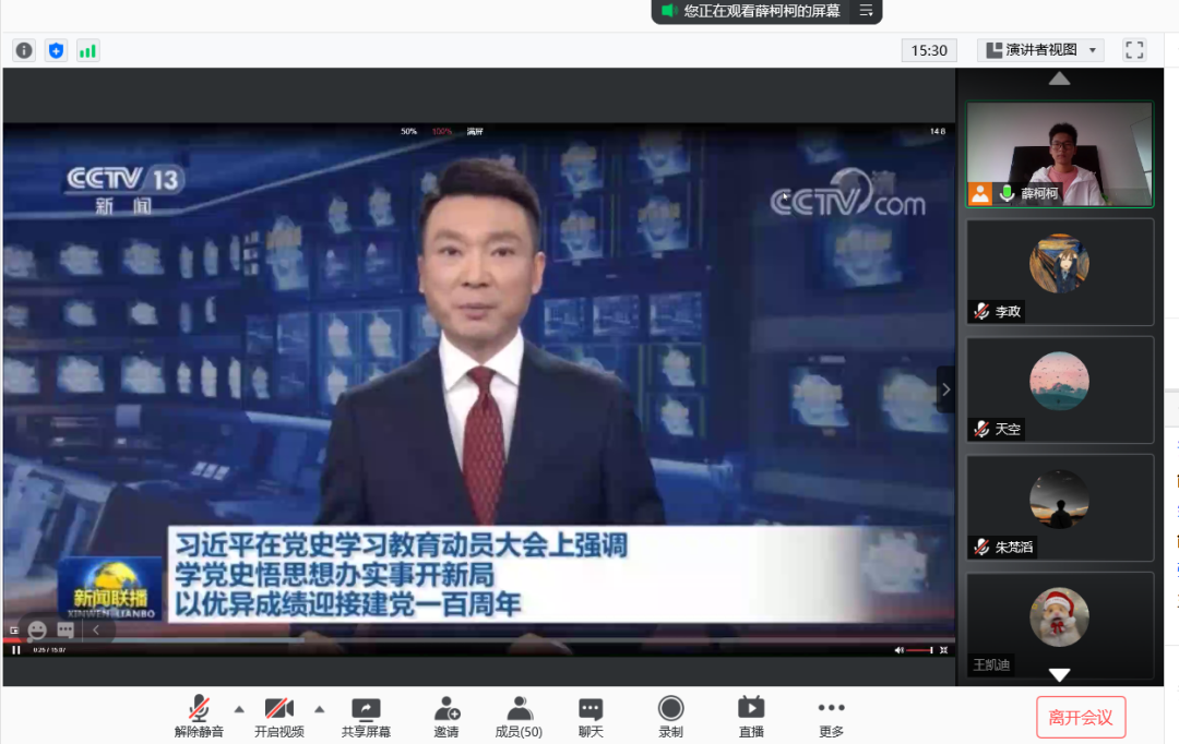 2021年正逢建党100周年,西安体育学院学生会组织了这次线上学习全国党史教育动员大会精神主题日活动。会议由校学生会执行主席薛柯柯主持,与会人员有校团委副书记王红霞老师和团委文体与实践创新部部长刘转同志,西安体育学院学生会成员,和各二级学院代表,共计100人左右。