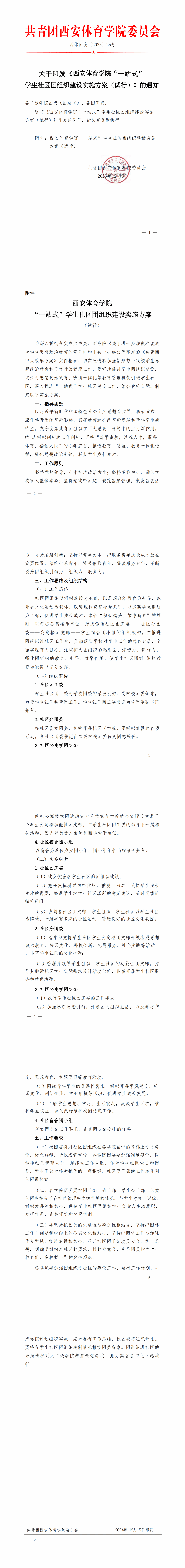 关于印发《西安体育学院“一站式” 学生社区团组织建设实施方案(试行)》的通知