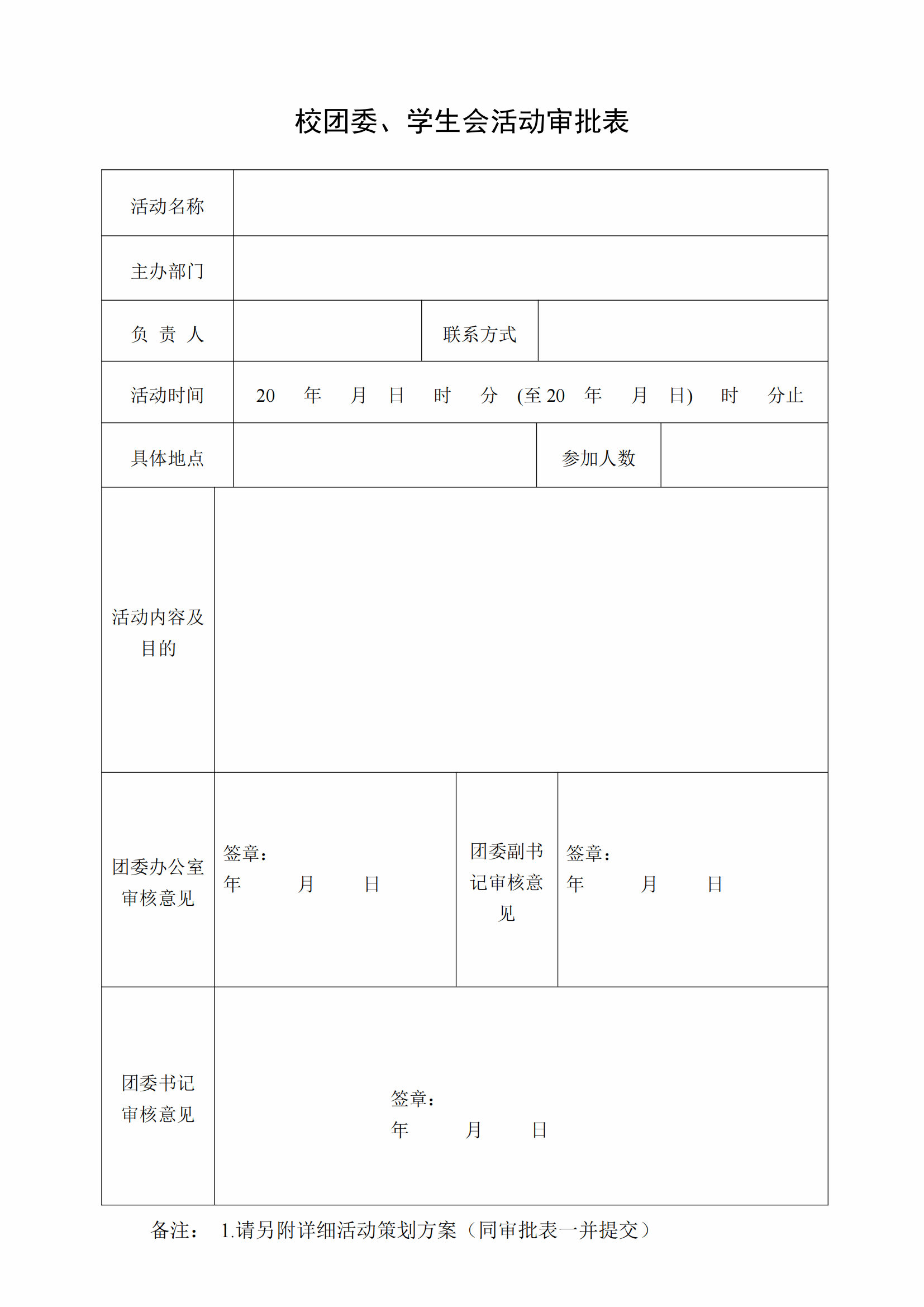 校团委,学生会活动申请表