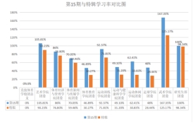 在本期与上一期的“青年大学习”参与率对比图中,竞技体育学校团委(↑0.00%)学习率较上一期相比有所增长,艺术学院学院团委(↓15.58%),运动休闲学院团委(↓31.58%)体育新闻与传媒学院团委(↓10.59%),体育教育学院团委(↓16.62%),运动与健康科学学院团委(↓17.90%),运动训练学院团委(↓20.56%),足球学院团委(↓19.56%),体育经济与管理学院(↓9.20%),武术学院团委(↓42.18%),研究生部团(↓1.66%)学习率较上一期相比有所下降。