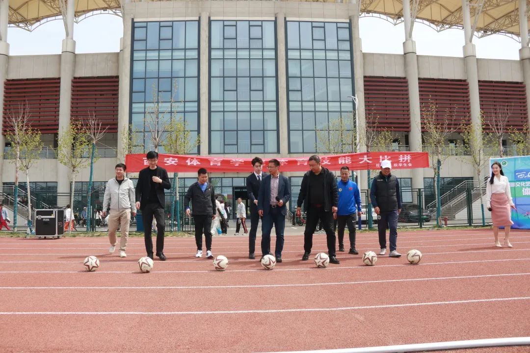 鄠邑校区管委会主任朱军、鄠邑校区管委会党委书记孙峰、校团委常委,运动训练学院团委书记,运动训练学院年级主任于昕、武术学院散打教研室主任李晓义、武术学院2021级年级负责人智文飞、足球教研室主任宋辉、校团委书记熊辉、校团委综合部副部长雷云、校学生会负责人及参赛运动员参加开幕式。首先由校团委书记熊辉老师宣读比赛活动理念及相关规则。鄠邑校区精彩的节目表演后,孙峰书记致开幕词,朱军主任宣布西安体育学院(鄠邑校区)体育技能大比拼开幕,参加开幕式的领导和老师进行了开球,宣布比赛正式开始。