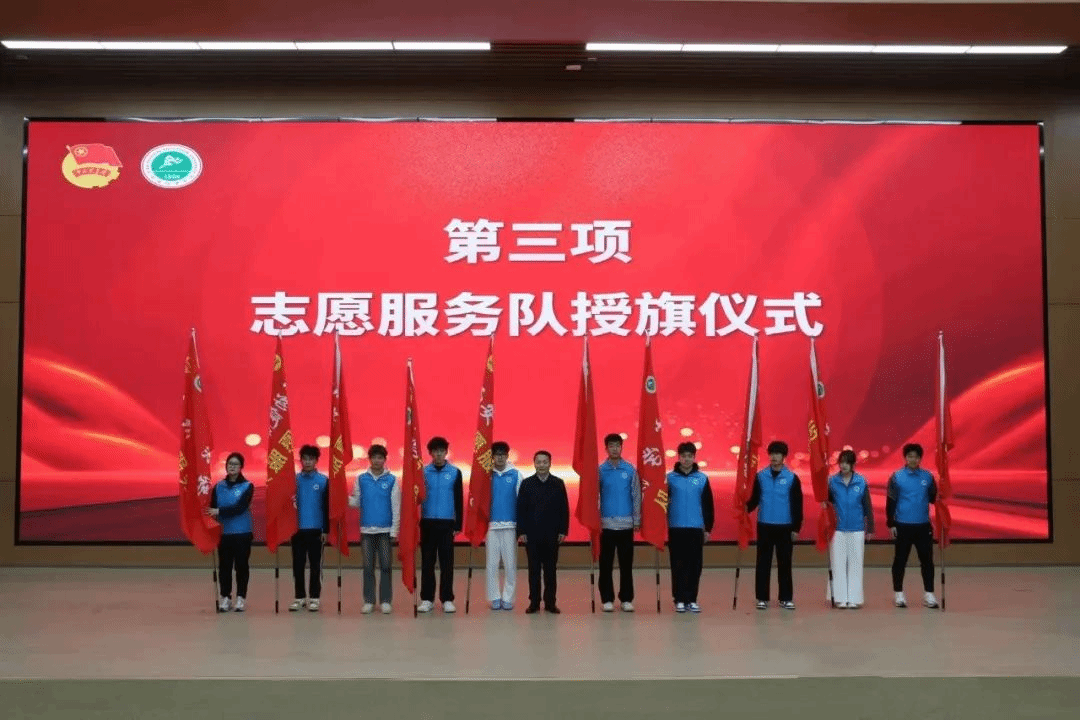 党委副书记马海涛为志愿服务队授旗,对我校志愿者们献身志愿服务的精神表示肯定,希望有更多同学能够投身到我校“3.5学雷锋志愿服务行动月”中来,共同上好时代发展的思政课和文明校园治理的实践课。