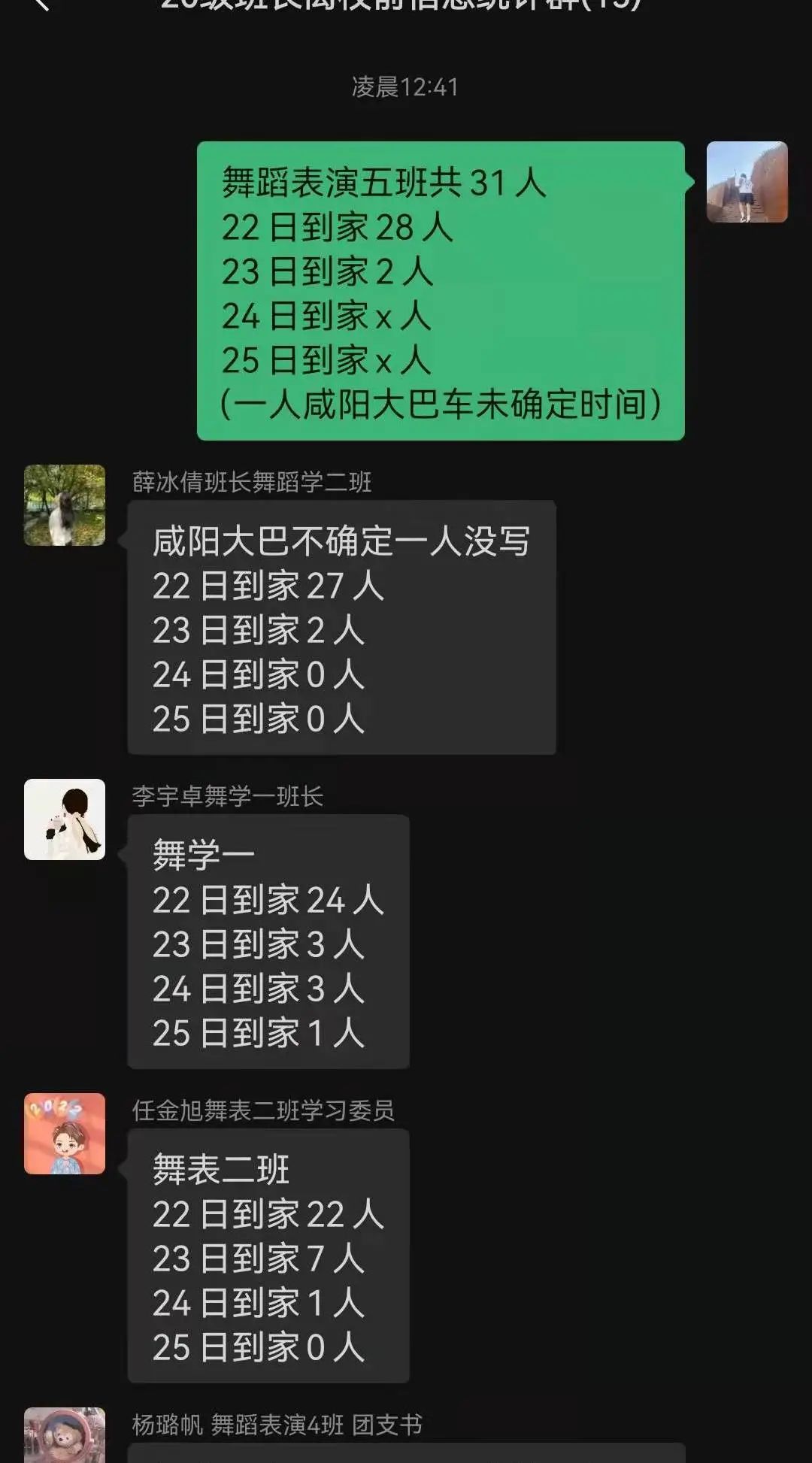 凌晨三点艺术学院返乡学子整装待发,在艺术学院党政班子的带领下,艺术学院学工办主任黄宏叶、副主任刘薇通宵进行线上工作部署,同时为返乡同学做好线上信息登记与答疑;辅导员赵静雯、车栋以及操舞教研室教师郭伟、闫晓、王硕老师等进行线下指挥,保障同学们有序乘坐西安体育学院返乡专列送站班车前往西安火车站、高铁站和飞机场。