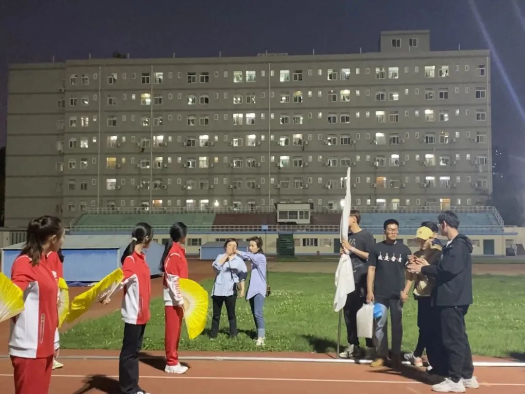 艺术学院学工办老师以及学生会干部在运动会开幕式前期的准备工作中,付出了大量的精力和时间。同时对学生们的方阵步伐、队形以及动作进行多方面指导,使方阵队伍更加整齐有序。