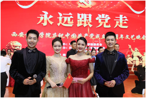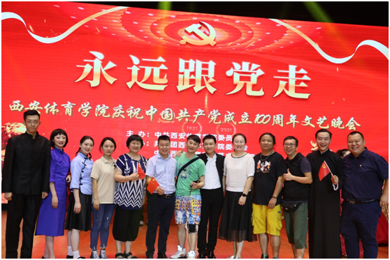 中国共产党建党百年之际,由校党委主办,校团委、艺术学院承办,体育新闻与传媒学院、武术学院协办的“永远跟党走”西安体育学院庆祝中国共产党成立100周年文艺晚会于6月30号完圆满落下帷幕。晚会节目分为“建党百年”、“扬帆起航”和“筑梦未来”三个篇章。体育新闻与传媒学院三十多位师生参与演出。