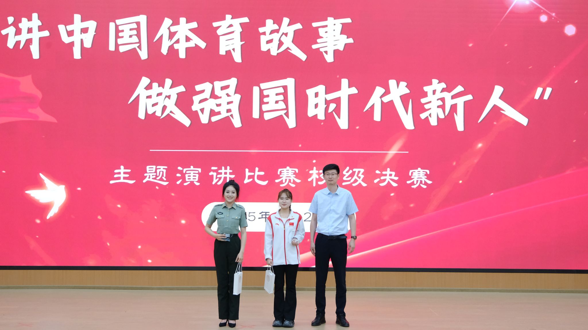 4月25日,由西安体育学院学生工作处、校团委主办,体育新闻与传媒学院承办、各二级学院团委、学生会协办的“讲中国体育故事,做强国时代新人”主题演讲比赛在西安体育学院鄠邑校区圆满结束。本次比赛是面向所有热爱体育文化、弘扬中国精神的全体在校本科生所进行的比赛。旨在弘扬体育精神,增强广大学生的爱国情怀和责任感,同时提升学生的演讲能力和综合素质。体育新闻与传媒学院李亦凡同学荣获本次比赛的一等奖、刘泊延同学荣获本次比赛的二等奖、闫瑾同学荣获本次比赛的三等奖。