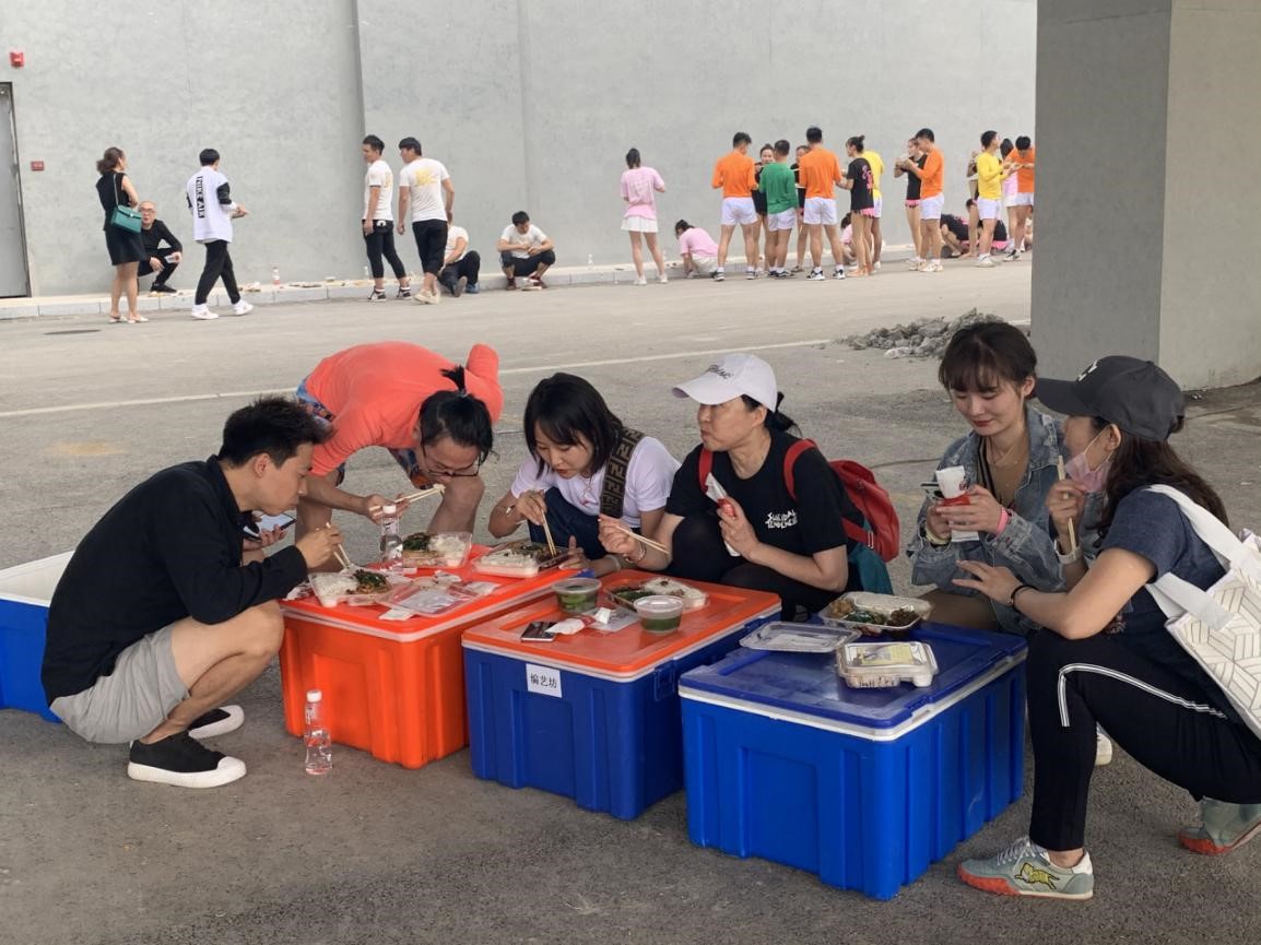 排练空余时间吃午饭的老师们