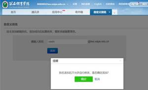 第三步:自主添加别名成功。例如:ceshi@tea.xaipe.edu.cn与808080@tea.xaipe.edu.cn为拥有不同名称的同一邮箱,此后您可使用以上两名称中的任意一个收发邮件。