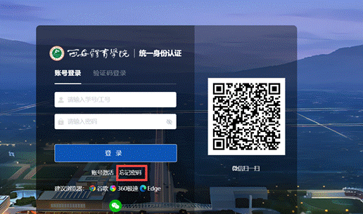 若您遗忘密码,可进入智慧校园融合门户界面(通过学校官网或上述访问链接直接进入智慧校园融合门户均可),点击忘记密码,按照操作提示进行找回。