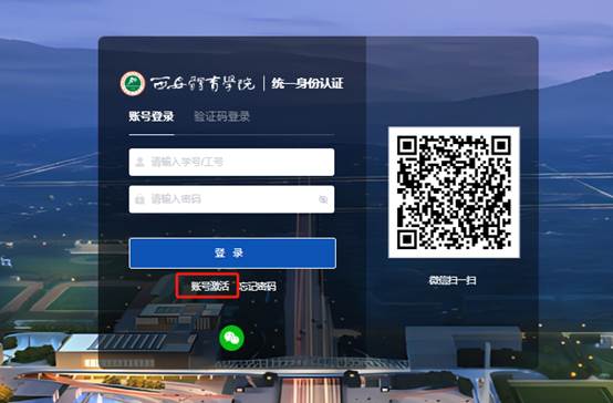 进入后点击账号激活,填写您的新工号、姓名及身份证号,确认身份的有效性;