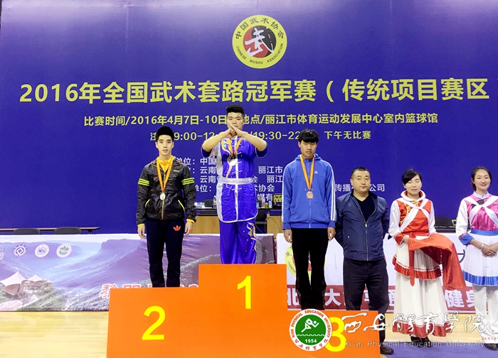 本次我院代表队由徐瑛、朱海楠担任教练。武术系学生齐鹏辉获得翻子拳冠军,沈奕菲获得陈式太极拳第八名,李宗泰获得孙氏太极拳第七名,协议队员罗双获得劈挂拳铜牌,胡荣钦获得42式太极拳第八名,薛俊杰获得体育道德风尚奖,四人达到国家一级运动员水平、一人达到国家运动健将(武英级)水平。这也是近六年来我院在该项赛事中的最好成绩。