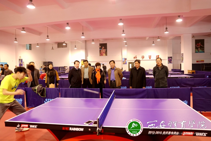 院领导陪同杨希文同志一行视察乒乓球馆