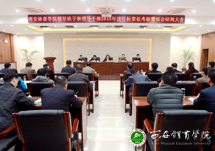 3月25日,我院在新网球馆六楼报告厅召开西安体育学院领导班子和领导干部2015年度目标责任考核暨综合研判大会。