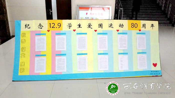 本网讯 为纪念“一二·九”学生爱国运动80周年,体育传媒系2012级学生党支部开展了以“缅怀一二九,共抒爱国情”为主题的征文活动。