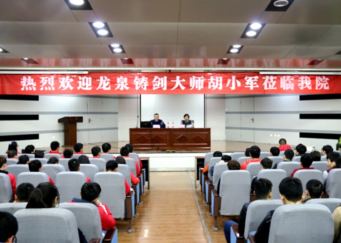 胡小军有着深厚的兵器文化知识,他将龙泉铸剑的发展历史和技术特点向同学们作了详细讲解,并与同学们分享了各时期、各地域具有代表性的宝剑,与同学们分享了如何欣赏和鉴别宝剑的基本知识,使大家对我国冷兵器的发展历史有了全新的认识。